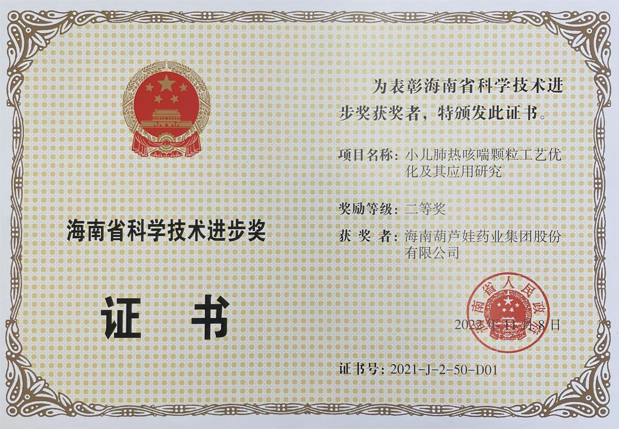 11月15日,海南省科学技术奖励大会在海口召开,揭晓了2021年度海南省科学技术奖。海南97国际药业集团股份有限公司凭借“小儿肺热咳喘颗粒工艺优化及其应用研究”,荣获海南省科学技术进步奖二等奖。项目主要完成人有刘景萍、刘全国、胡俊斌、李培湖、刘萍、王家、陈克领、何彦博。