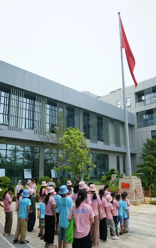 紧接着,孩子们来到了建党百年庆典红旗——070号红旗前。讲解员讲述了97国际药业集团与庆典红旗的深厚渊源。孩子们听得津津有味,眼中闪烁着对党和国家的热爱与敬仰。